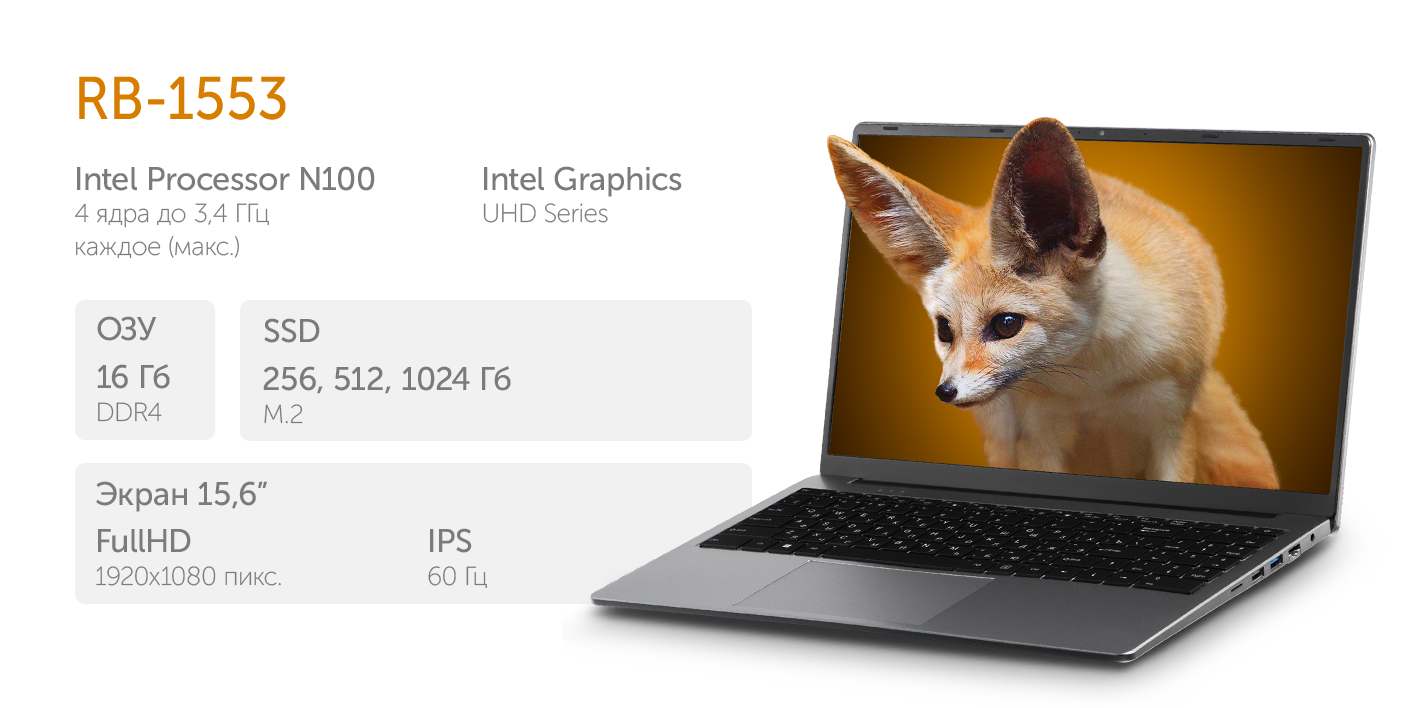 Azerty RB-1553 — ноутбук из серии Novel, то есть предназначен для использования в корпоративной среде и малом бизнесе. Он отличается доступной ценой и производительностью, достаточной для выполнения повседневных задач, таких как работа с документами, поиск информации в интернете, просмотр видео. А в свободное время даже позволит расслабиться в несложных игровых приложениях.