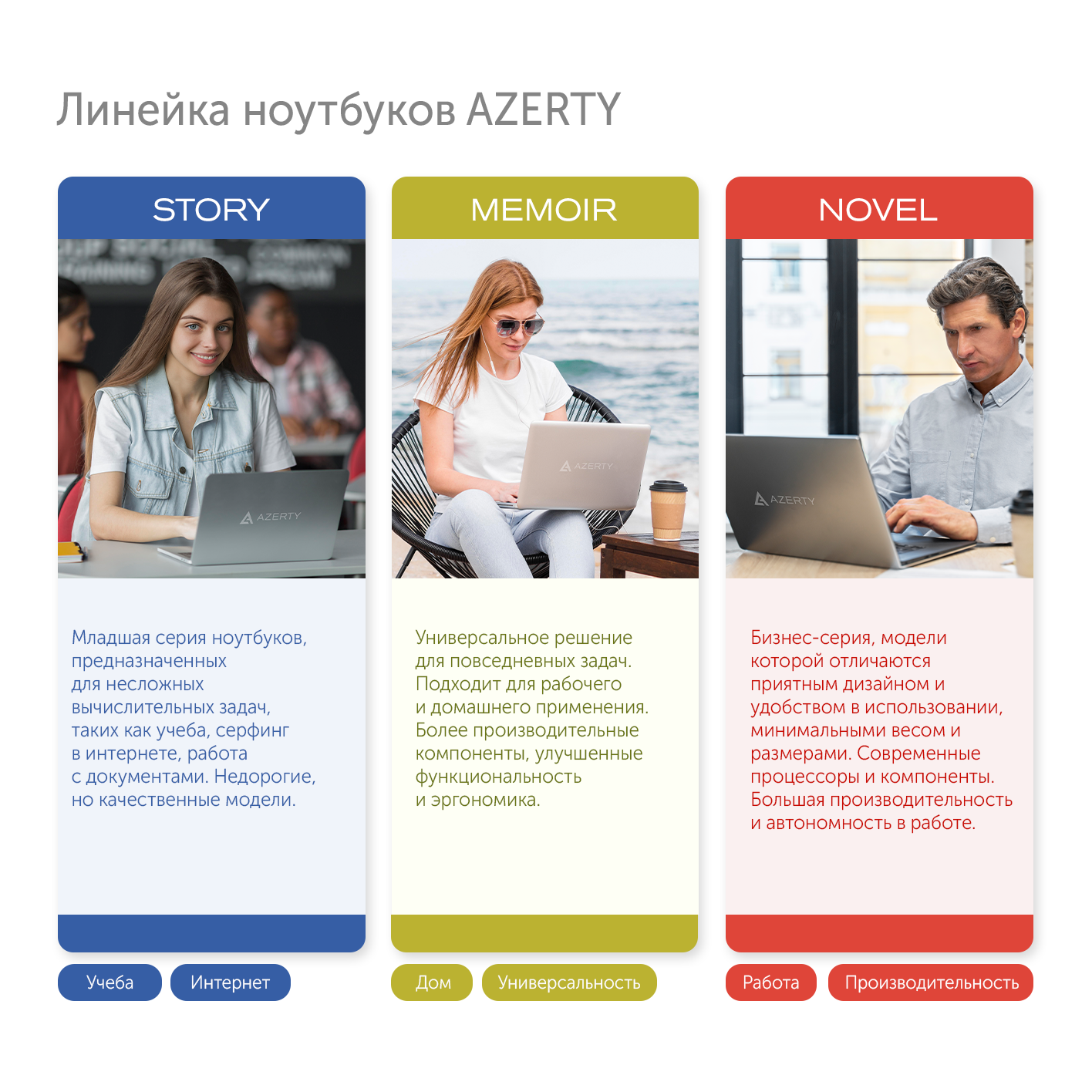 Azerty RB-1561 - изящный представитель серии Memoir, ноутбуков, предназначенных для домашнего использования. Корпус устройства сделан из прочного темно-серого пластика. Рисунок на поверхности искусно имитирует благородную структуру карбона, создавая иллюзию волокнистого переплетения.
